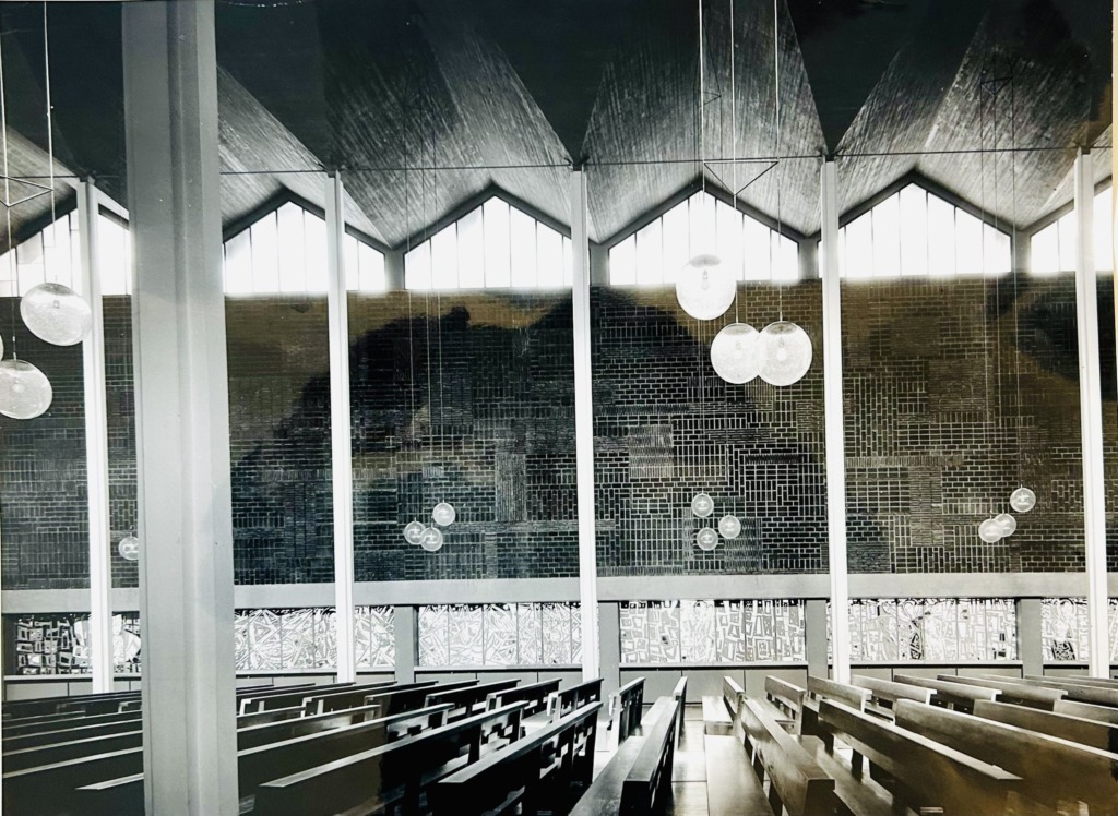 Titel: Akkustikwand Pauluskirche Serie: Unikat Jahr: 1960 Kategorien: öffentl. Raum Technik: Backsteinwand Paulskirche Stuttgart (Architekten Rall und Römer, Stuttgart)