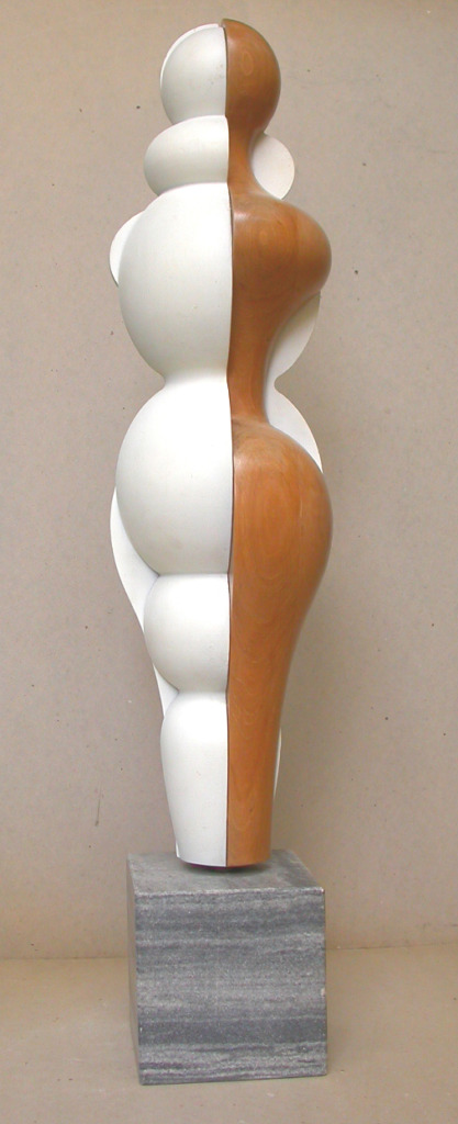 Titel: Figuration II Serie: Unikat Jahr: 1983 Kategorien: Figurationen, Modelle u. A. Technik: Holz + Farbe + Marmorsockel Größe: 72 cm + Marmorsockel 8 x 15 x 15 cm Sammlung: Privat Foto: Nicole Bohnet