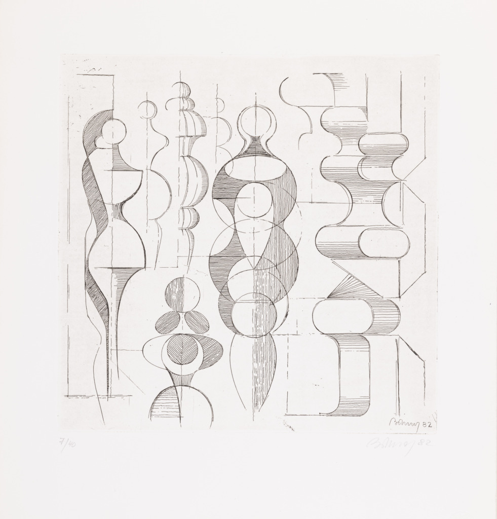 Titel: Grafik 43 Serie: Auflage 40 Jahr: 1983 Kategorien: Grafiken Technik: Radierung Größe: 70 x 53 cm Foto : Klaus Mellenthin