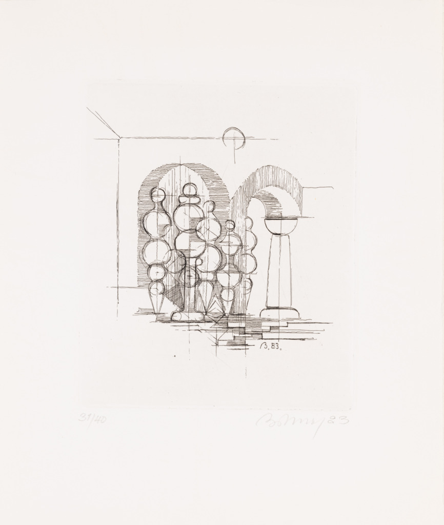 Titel: Grafik 46 Serie: Auflage 40 Jahr: 1983 Kategorien: Grafiken Technik: Radierung Größe: 39 x 32 cm Foto : Klaus Mellenthin