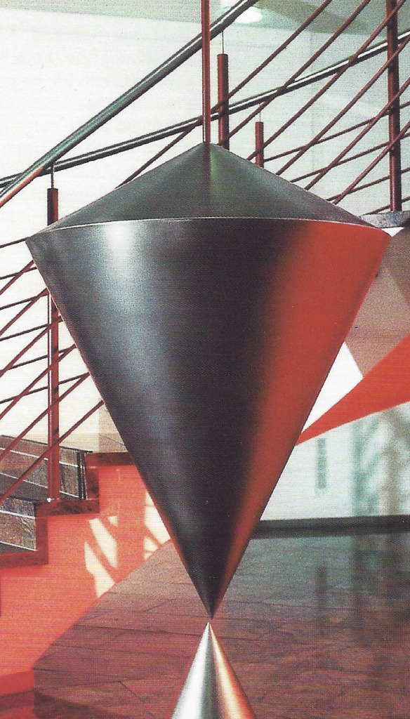 Titel: Großes Senklot Jahr: 1994 Kategorien: öffentl. Raum Technik: V2A-Stahl Sammlung: Treppenhaus und Wandgestaltung der Eingangshalle der RWG GmbH Stuttgart, jetzt FUDUCIA IT AG
