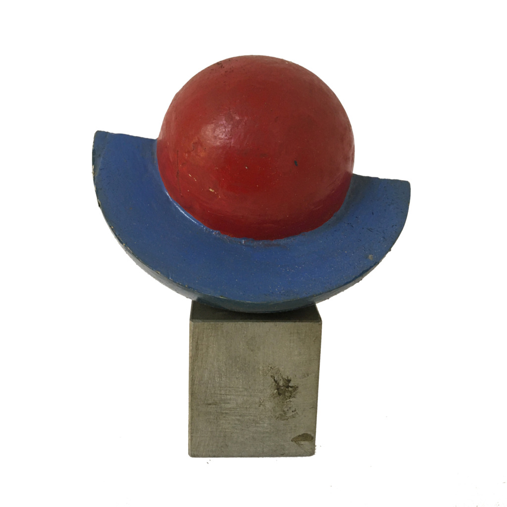 Titel: Modell/Vorstufe Wunderapfel/Zauberapfel Kindergarten Bonn Serie: Unikat Jahr: 1972 Kategorien: Kugeln, Modelle u. A. Technik: Aluminiumguss + Farbe Größe: Ø = 11 cm + Steinsockel 4 x 4 cm Sammlung: Privat Foto: Nicole Bohnet