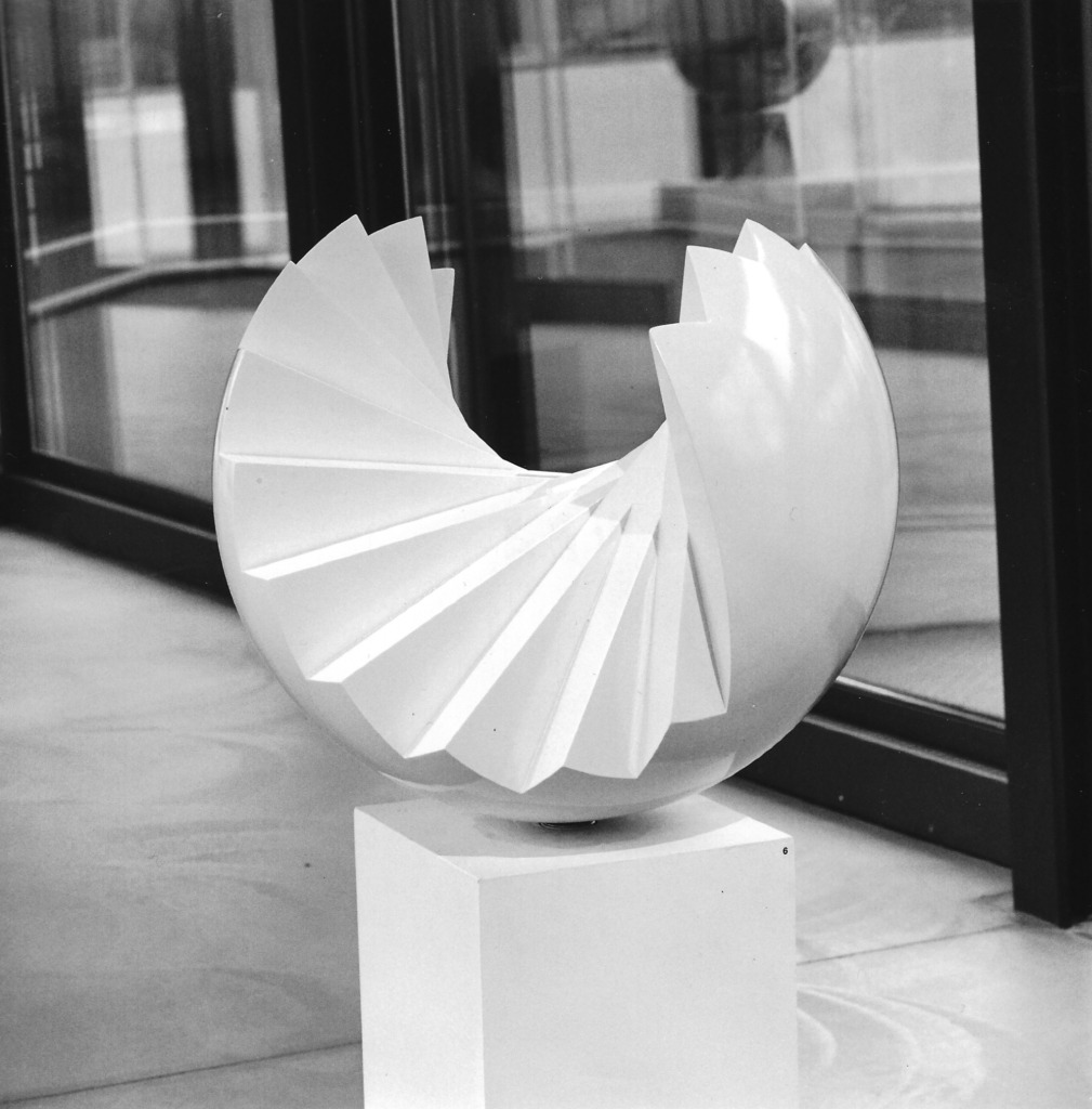 Titel: Kugelobjekt Auffächerung I Serie: Auflage 2 Jahr: 1970 Kategorien: Kugeln, Modelle u. A. Technik: Polyurethan weiß Größe: Ø = 60 cm Sammlung: Privat