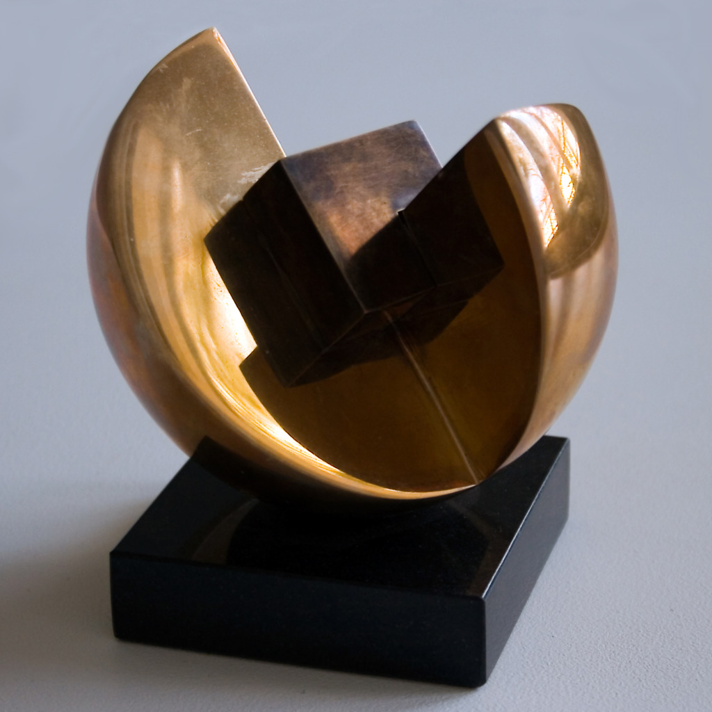 Titel: Kugelobjekt – Kubus in Kugel Serie: Auflage 20 Jahr: 1994 Kategorien: Kugeln, Modelle u. A. Technik: Spiegelbronze Größe: Ø = 11 Sammlung: Privat Foto: Heiner Frahm