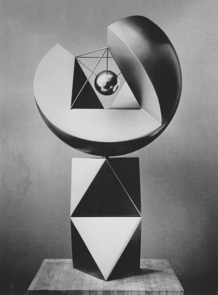 Titel: Kugelobjekt mit Oktaeder ( positiv – negativ ) Serie: Unikat Jahr: 1977 Kategorien: Kugeln, Modelle u. A. Technik: V2A-Stahl Größe: Ø = 60 cm Sammlung: Privat Foto: Tomas Riehle