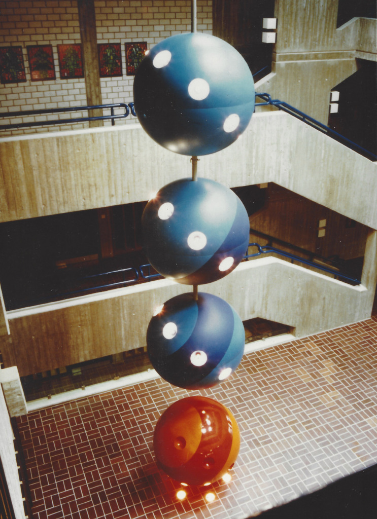 Titel: Lichtplastik Serie: Unikat Jahr: 1974/75 Kategorien: Kugeln, öffentl. Raum Technik: Polyester + Acrylglas farbig Sammlung: Berger Schule, Stuttgart-Berg Architekt: Ries, Böblingen Foto: Christa Planck