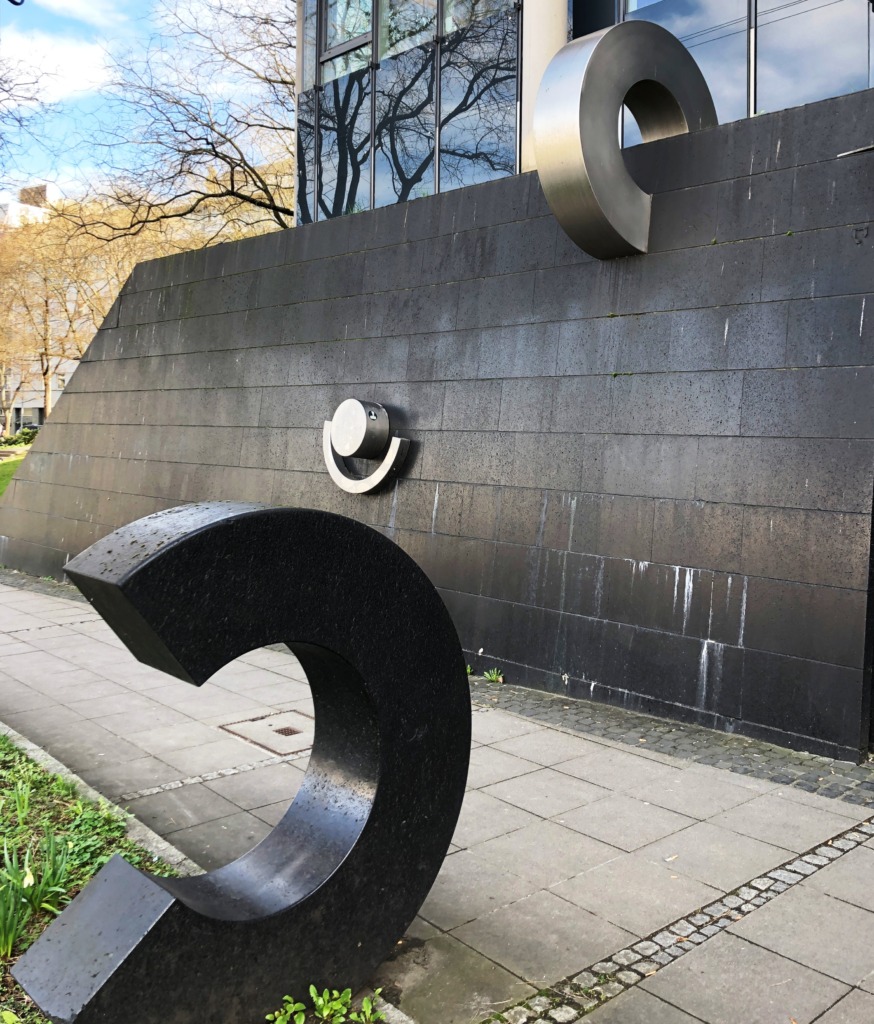 Titel: Objekte und Reliefs zum Thema Rad Jahr: 1995/96 Kategorien: öffentl. Raum Technik: V2A-Stahl + Basaltlava Sammlung: Motorpresshaus Stuttgart Foto: Erhard Bruckmann, Verschönerungsverein Stuttgart