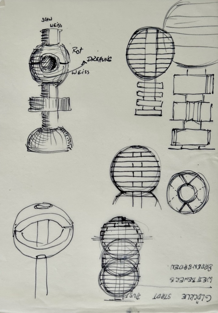 Titel: Skizze 111 Serie: Unikat Jahr: unbekannt Kategorien: Grafiken Technik: Pigmenttusche Größe: A 4 Sammlung: privat Untertitel: Glöckle Wettbewerb Bodensee Foto: Nicole Bohnet
