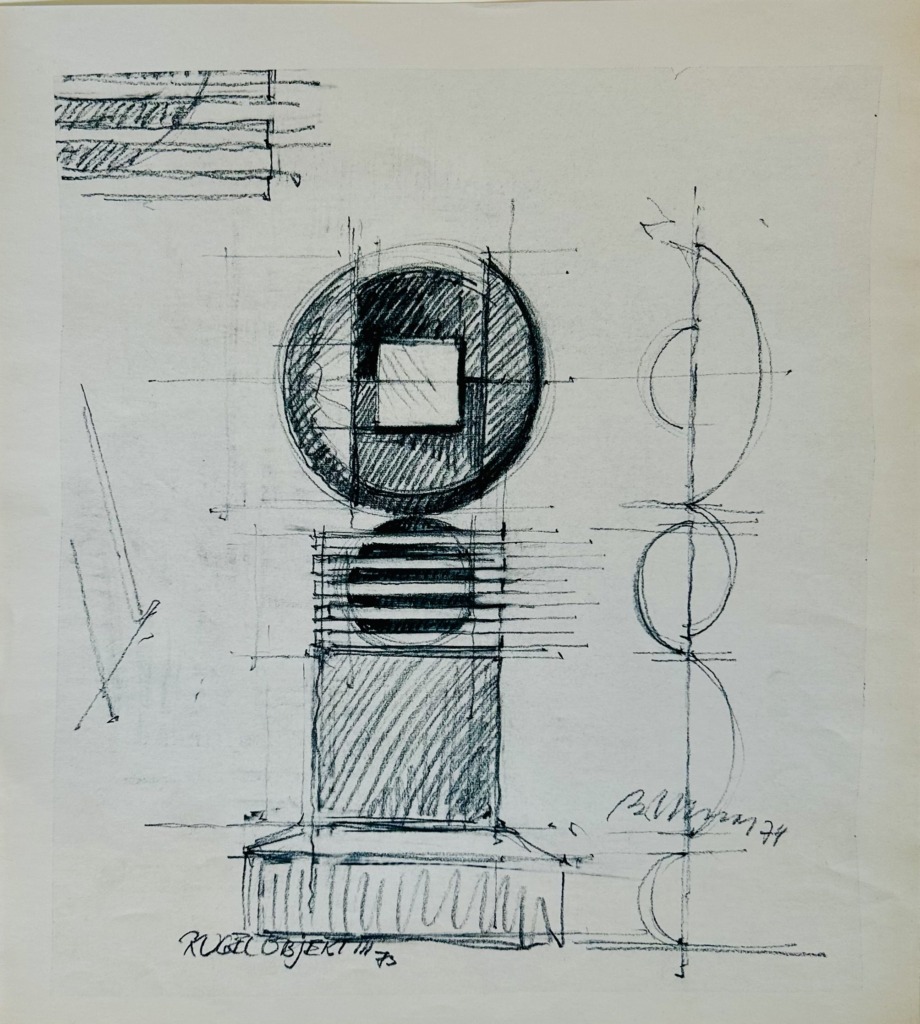 Titel: Skizze 128 Serie: Unikat Jahr: 1972 Kategorien: Grafiken Technik: Pigmenttusche Größe: 32 x 28 cm Sammlung: privat Untertitel: Kugelobjekt für öffentlichen Raum Foto: Nicole Bohnet