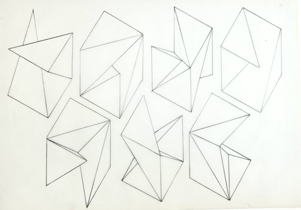 Titel: Studie 49 Jahr: 1998 Kategorien: Grafiken Technik: Pigmenttusche Größe: 30 x 42 cm Untertitel: Kubusvariation 4 Foto: Nicole Bohnet