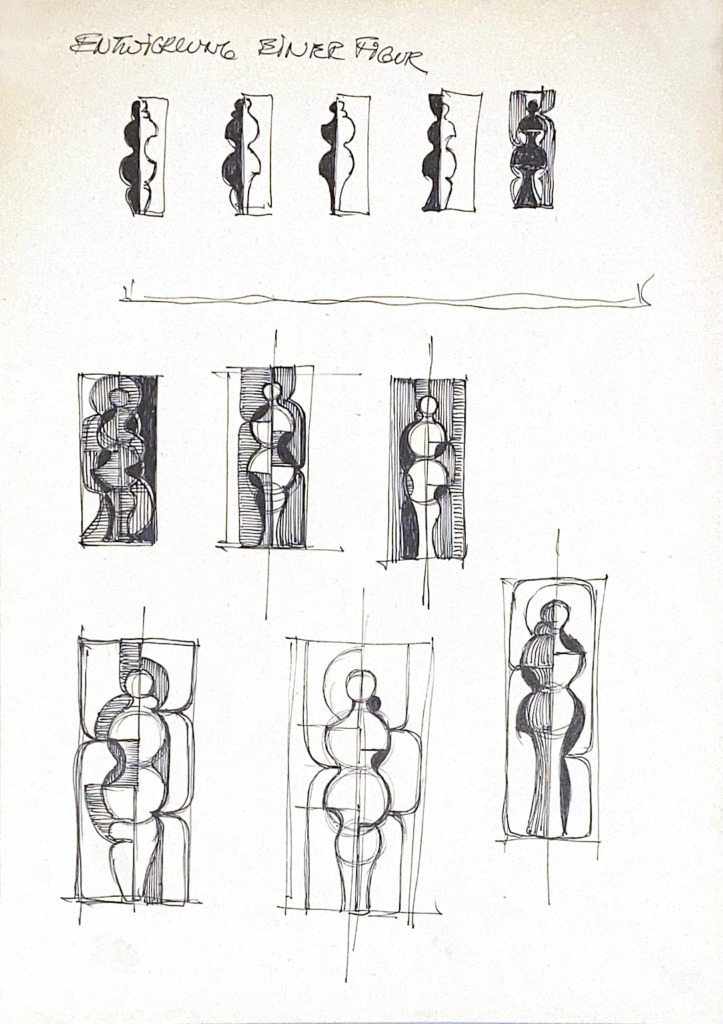 Titel: Studie 45 Entwicklung einer Figur Serie: Unikat Jahr: ca 1987 Kategorien: Grafiken Technik: Pigmenttusche Größe: 21 x 30 cm Sammlung: privat Preis: auf Anfrage Foto: Lilli Pachaly