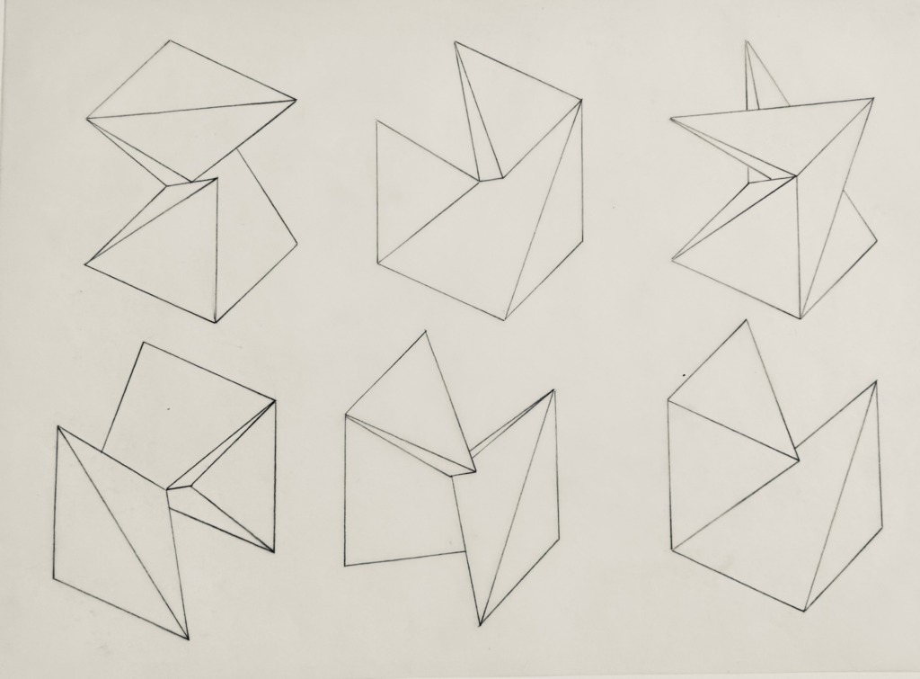 Titel: Studie 72 Serie: Unikat Jahr: 1998 Kategorien: Grafiken Technik: Pigmenttusche Größe: 30 x 42 cm Untertitel: Kubusvariation 8 Foto: Nicole Bohnet