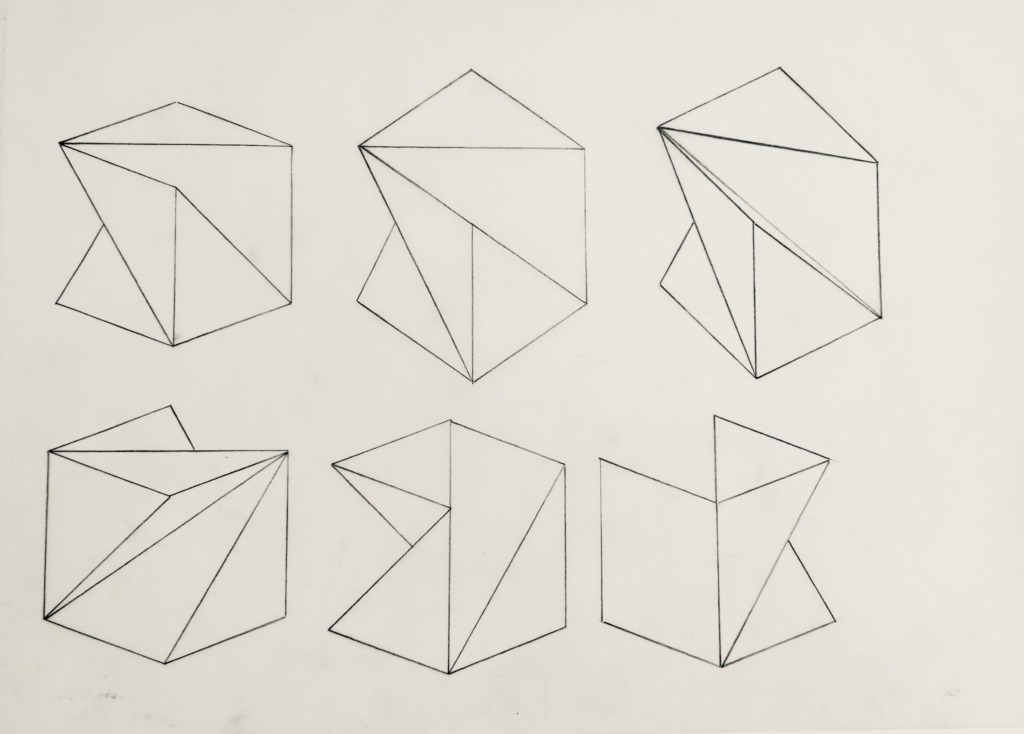 Titel: Studie 76 Serie: Unikat Jahr: 1999 Kategorien: Grafiken Technik: Pigmenttusche Größe: 30 x 42 cm Sammlung: privat Untertitel: Kubusvariation 12 Foto: Nicole Bohnet