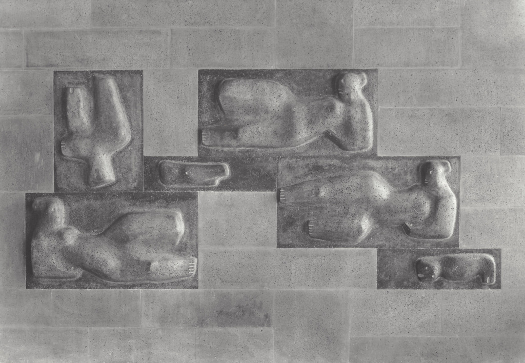 Titel: Liegende Frauen Serie: Unikat Jahr: 1959 Kategorien: Figurationen, öffentl. Raum Technik: Basaltlava Größe: 400 x 1000 cm Sammlung: Bürgerhospital Stuttgart Architekt: Herkomme, Stuttgart Foto: Otto Benner