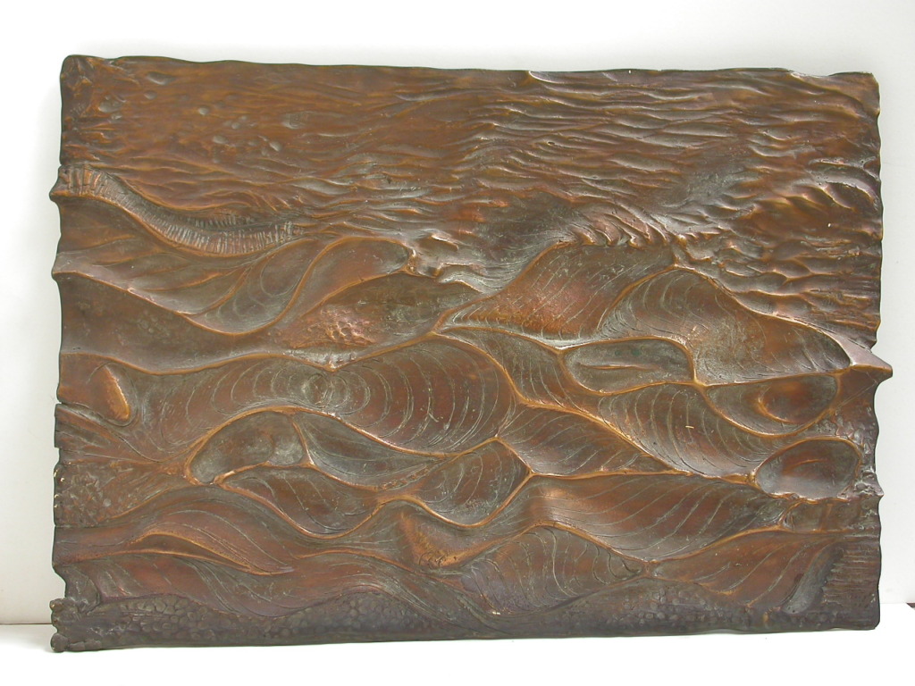 Titel: Wasserlandschaft Normandie Serie: Auflage 6 Jahr: 1980 Kategorien: Modelle u. A. Technik: Bronze Größe: 40 x 60 cm Sammlung: Privat
