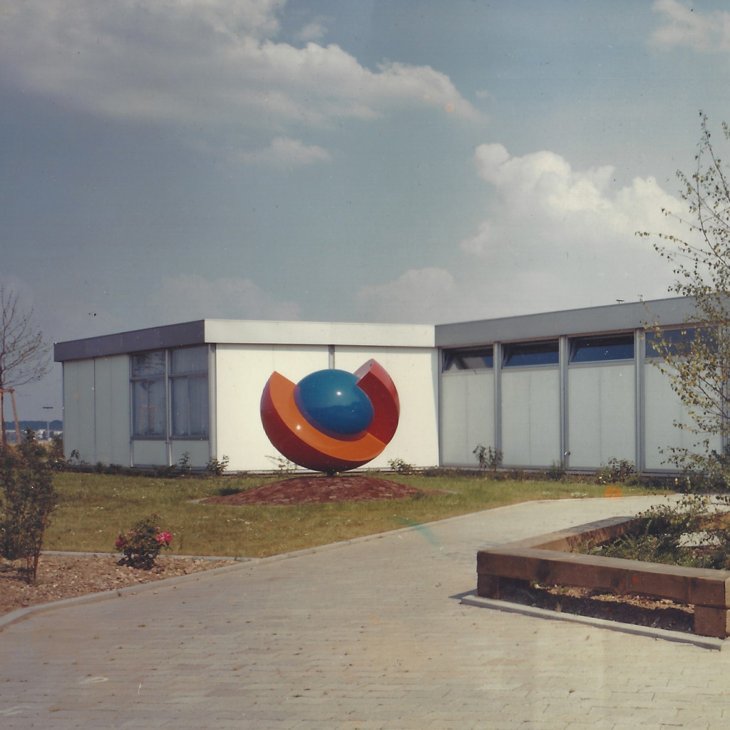 Titel: Wunderapfel / Zauberapfel Serie: Unikat Jahr: 1972 Kategorien: Kugeln, öffentl. Raum Technik: Polyester farbig Größe: Ø = 200 cm Sammlung: ehemals Verteidigungsministerium Kindertagesstätte Bonn (verschollen) Fotoarchiv: Nicole Bohnet