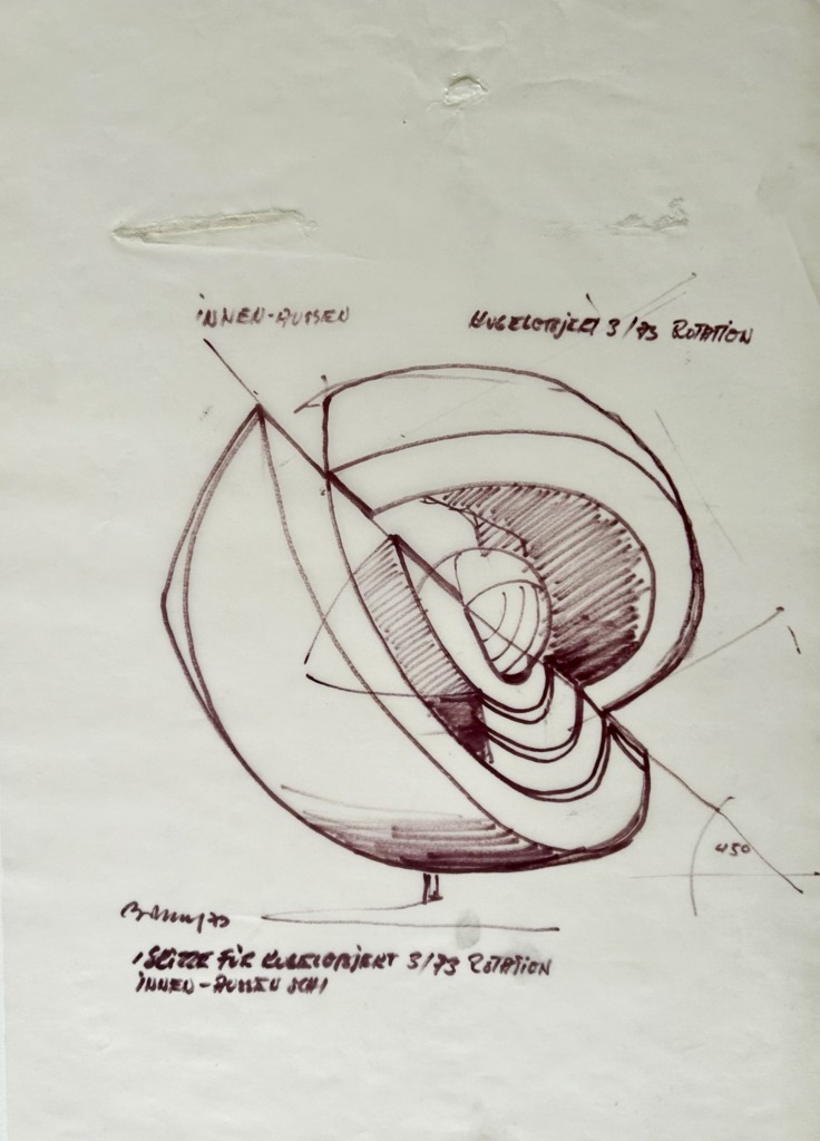 Titel: Zeichnung 2 für drehbares Kugelobjekt Serie: Unikat Jahr: 1991/92 Kategorien: Grafiken Technik: Pigmenttusche Größe: A3 Sammlung: privat Foto: Nicole Bohnet