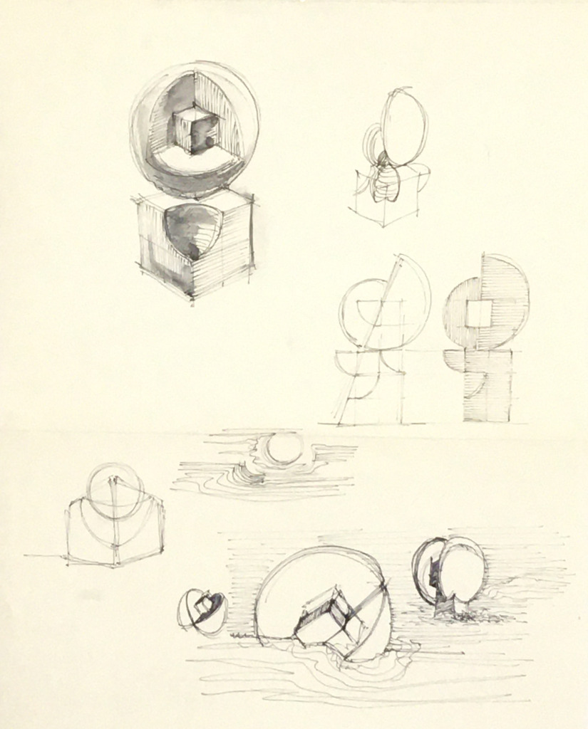 Titel: Skizze 8 Kugel + Kubus Serie: Unikat Jahr: 1998 Kategorien: Grafiken Technik: Pigmenttusche Größe: 53 x 43 cm Sammlung: Privat Foto: Nicole Bohnet