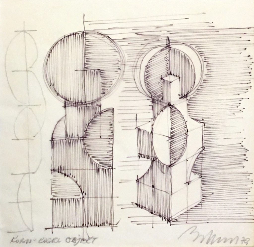 Titel: Zeichnung 9 Kugel – Kubus – Objekt Serie: Unikat Jahr: 1979 Kategorien: Grafiken Technik: Pigmenttusche Größe: 20 x 20 cm Sammlung: Privat Foto: Nicole Bohnet